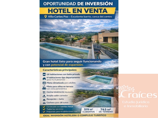 HOTEL EN VENTA EN EL MEJOR BARRIO DE VILLA CARLOS PAZ